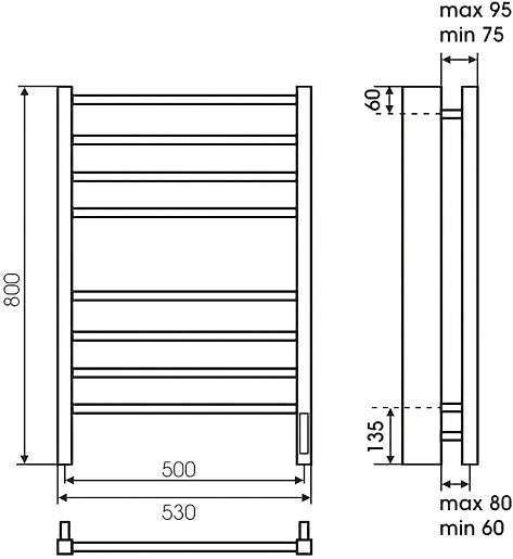 Terminus Полотенцесушитель электрический Сицилия П8 500x800 черный муар