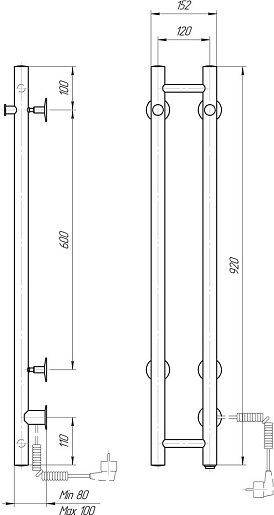 Комплектация: полотенцесушитель, кронштейн (4 шт.), комплект для скрытого подключения, провод с вилкой.