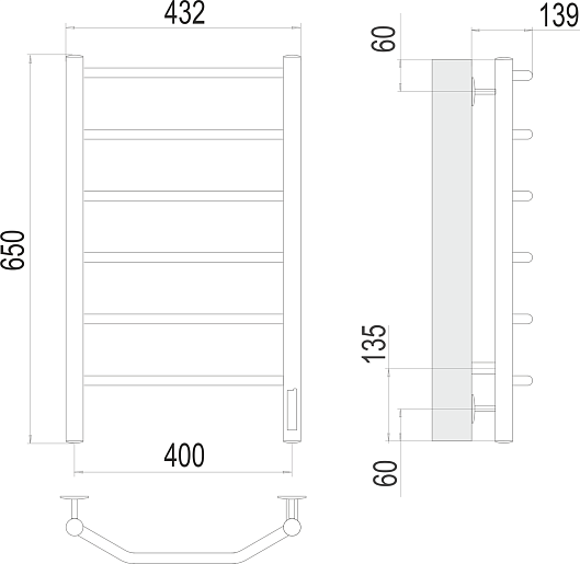 Полотенцесушитель электрический Terminus Виктория П6 400x650 - арт. 4670078531186.
