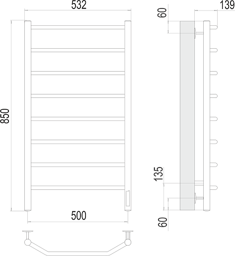 Полотенцесушитель электрический Terminus Виктория П8 500x850 - арт. 4670078531216.