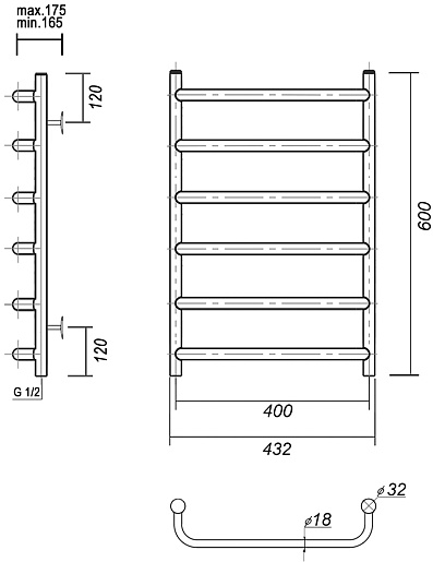 Комплектация: полотенцесушитель, крепление телескопическое (4 шт.), заглушка, кран Маевского, угловой переходник (2 шт.).