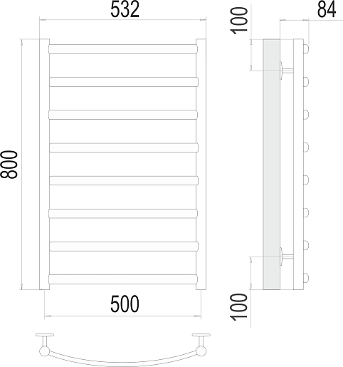 Комплектация: полотенцесушитель, крепеж.
