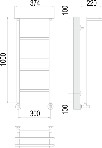 Terminus Полотенцесушитель водяной Контур П9 300x1000 с полкой хром