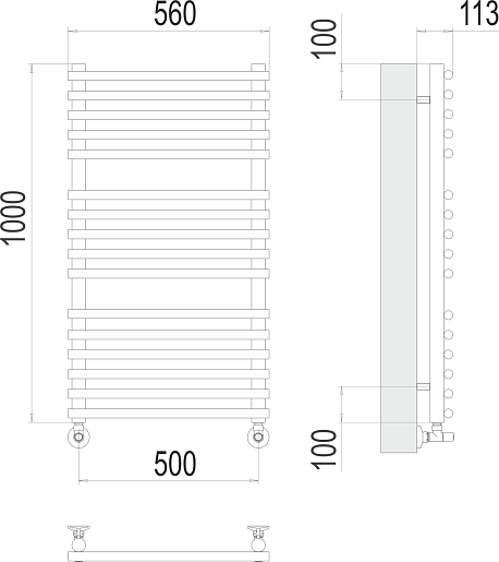 Комплектация: полотенцесушитель, вентиль 3/4x1/2 ГШ (2 шт.), эксцентрик 3/4x1/2 (2 шт.), отражатель 3/4 (2 шт.), крепеж.