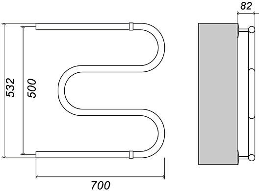 Комплектация: полотенцесушитель в сборе, телескопический держатель с кольцом (2 шт.).