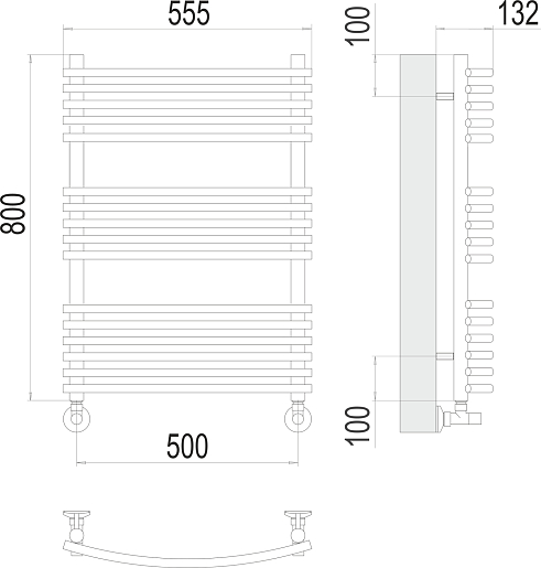 Комплектация: полотенцесушитель, вентиль 3/4x1/2 ГШ (2 шт.), эксцентрик 3/4x1/2 (2 шт.), отражатель 3/4 (2 шт.), крепеж.