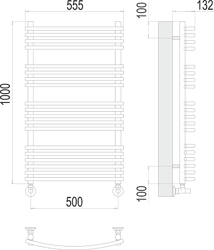 Комплектация: полотенцесушитель, вентиль 3/4x1/2 ГШ (2 шт.), эксцентрик 3/4x1/2 (2 шт.), отражатель 3/4 (2 шт.), крепеж.