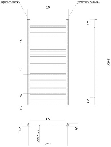 Комплектация: полотенцесушитель, кран Маевского, крепеж.