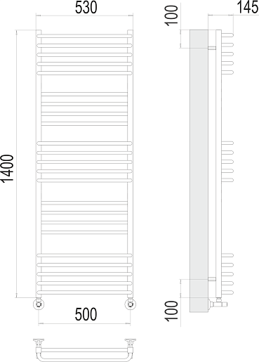 Комплектация: полотенцесушитель, вентиль угловой квадратный 3/4x1/2 ГШ (2 шт.), эксцентрик (2 шт.), отражатель (2 шт.), крепеж.
