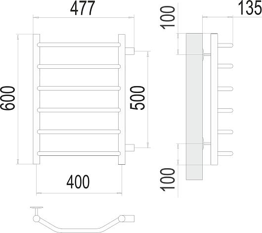Полотенцесушитель водяной Terminus Виктория П6 400x600 БП500 хром - арт. 4670078530059.