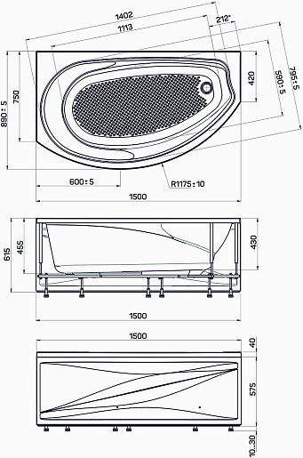 Акриловая ванна Poseidon Damelia 150x90 R - арт. 01дам1590п.
