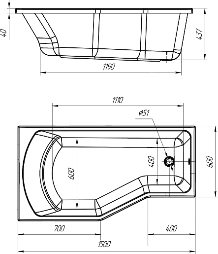 Акриловая ванна Poseidon Kamila 150x80 L - арт. 01кам1580л.