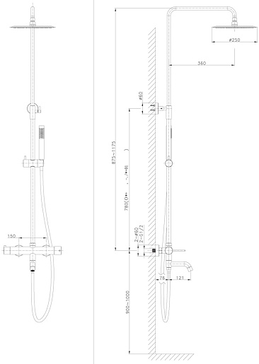 - Диаметр верхнего душа: 25 см.