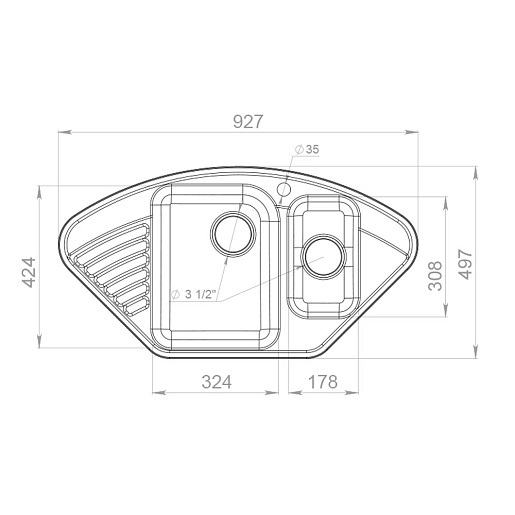 - Размер чаши, мм 324x424x180, 178x308x120