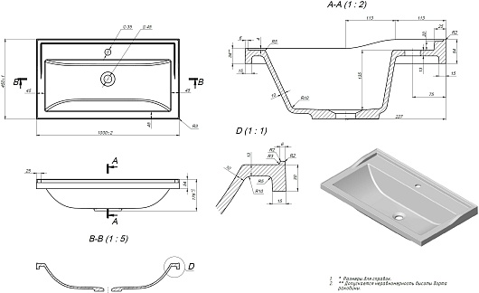 - Материал: литьевой мрамор.