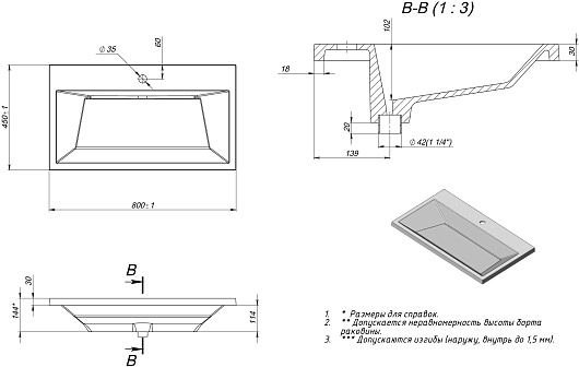 - Диаметр сливного отверстия: 42 мм (под сифон 4 см).