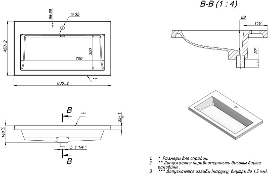 - Размер (ШxДxВ): 800 x 450 x 140 мм.