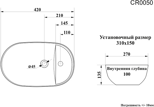 Накладная раковина Ceruttispa 42 CR0050 - арт. 9611.