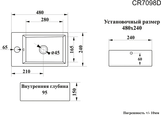 Накладная раковина Ceruttispa 48 CR7098D - арт. 9862.