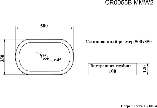 - Размер (ШxДxВ): 500x350x120 мм.