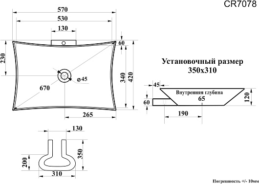 Накладная раковина Ceruttispa 57 CR7078 - арт. 9590.