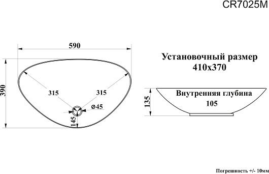 Накладная раковина Ceruttispa 59 CR7025M- арт. 9579.