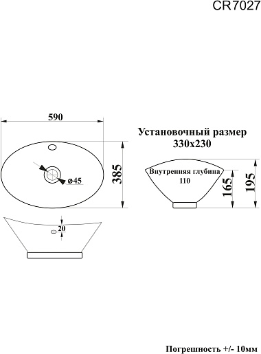 Накладная раковина Ceruttispa 59 CR7027 - арт. 9946.