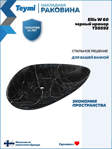 Teymi Раковина накладная Ellie W 60 T50592 черный мрамор