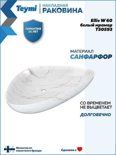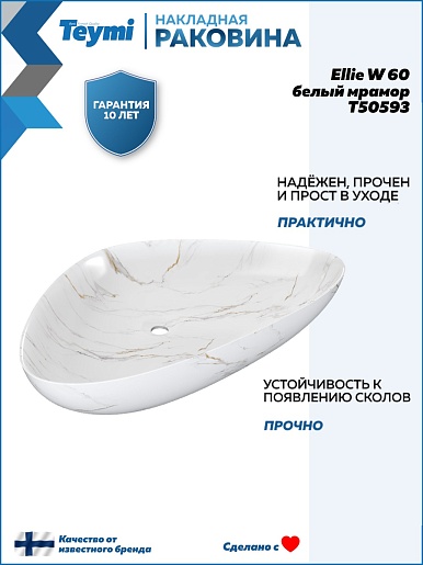 Накладная раковина Teymi Ellie W 60 T50593 белый мрамор - арт. T50593.