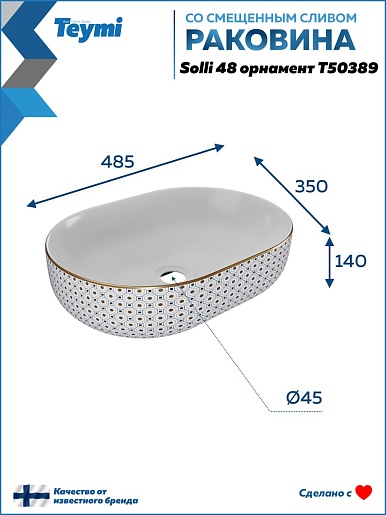 Teymi Раковина накладная Solli 48 T50389 белая с орнаментом