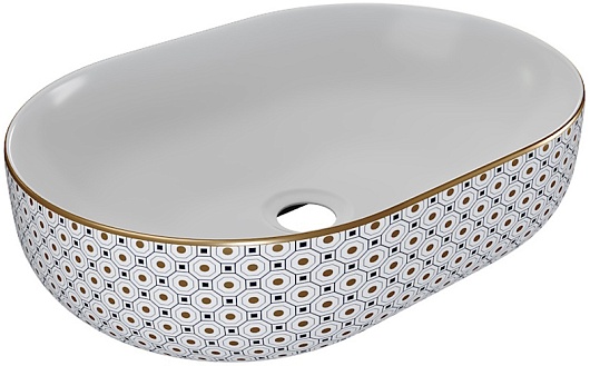 Накладная раковина Teymi Solli 48 T50389 белая с орнаментом - арт. T50389.
