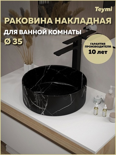 Teymi Раковина накладная в ванную Lina D35 мрамор чёрный матовый T50183