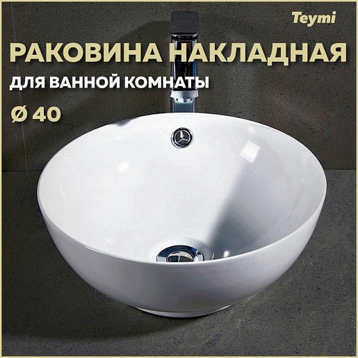 Teymi Раковина накладная в ванную Lina kuppi D40 белая T50103