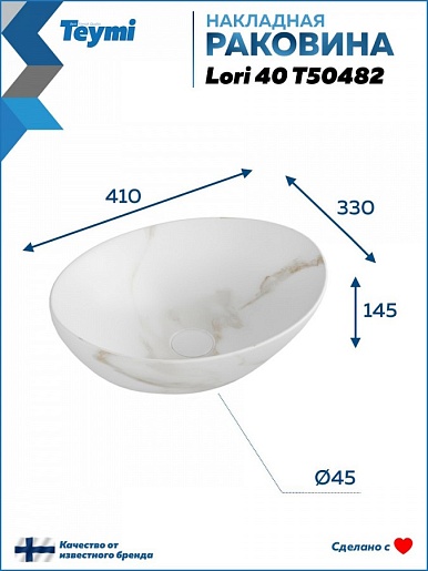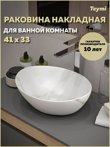 Teymi Раковина накладная в ванную Lori 40 мрамор белый матовый T50482