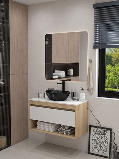 Teymi Раковина накладная в ванную Lori 40 мрамор чёрный матовый T50483