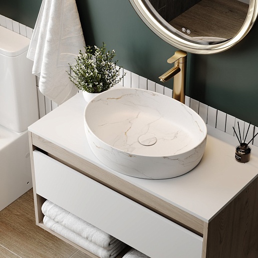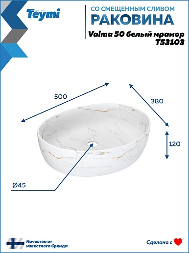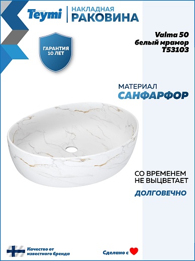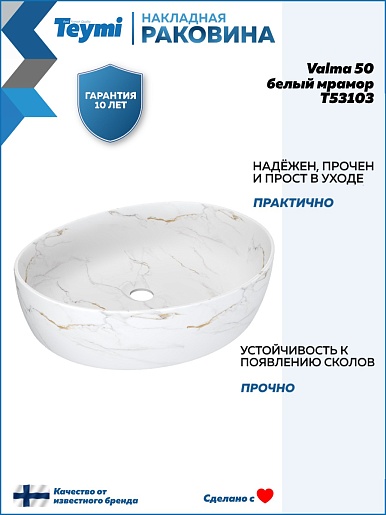 Накладная раковина Teymi Valma 50 T53103 белый мрамор - арт. T53103.