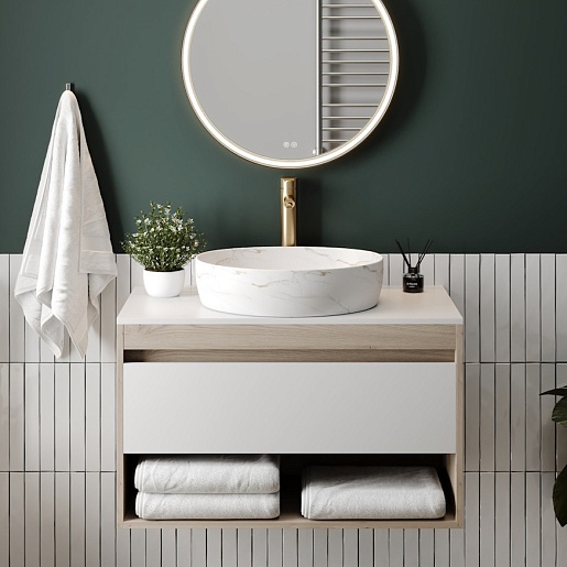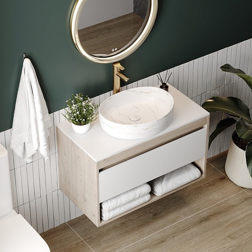 Teymi Раковина накладная Valma 50 T53103 белый мрамор