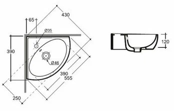 Керамин Раковина угловая Лаго 55 4810531139829