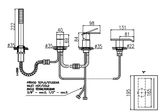 - Монтаж на борт ванной, 4 отверстия