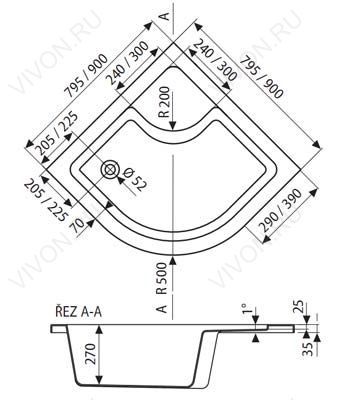 Ravak A217001020 Поддон для душа Ravak SABINA-90 LA