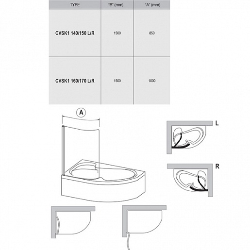 Ravak Шторка для ванны Chrome CVSK1 ROSA 160/170 R (7QRS0100Y1)