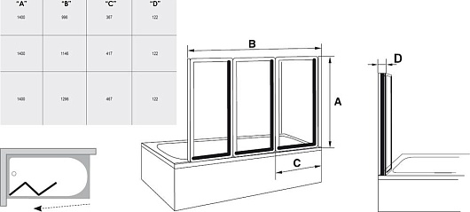 Шторка для ванной VS3 130 арт. 795V0100ZG:- типовое исполнение: поворачивающееся изделие(L/R)