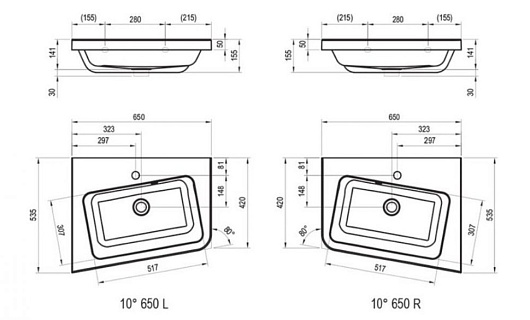 - Раковина 10° 65 R, искусственный мрамор , арт. XJIP1165000