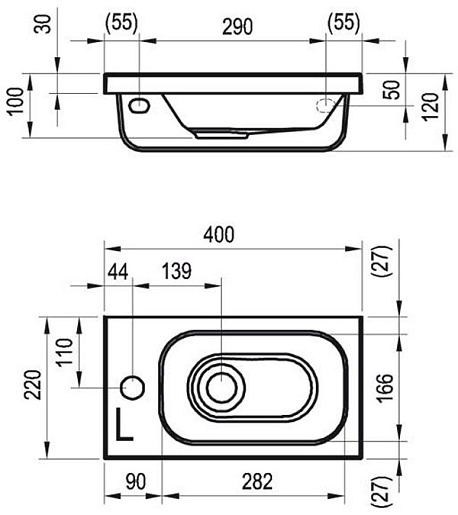 - Умывальник Chrome 400 левый белый с отверстиями, арт. XJGL1100000