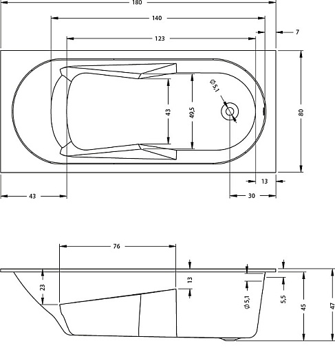 Riho Акриловая ванна LAZY 180х80
