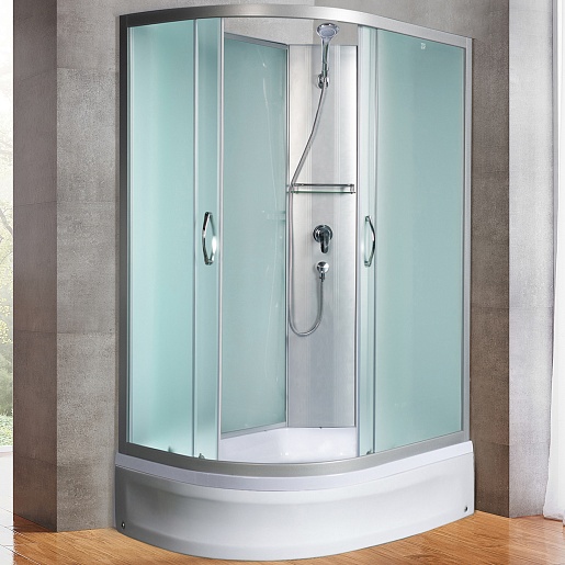 Стёкла кабины – матовые, задняя стенка изготовлена из прозрачного стекла. Конструкция включает две раздвижные двери с толщиной стекла 4 миллиметра.