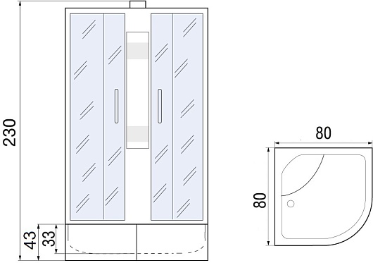 - Размер: 800x800x2300 мм.