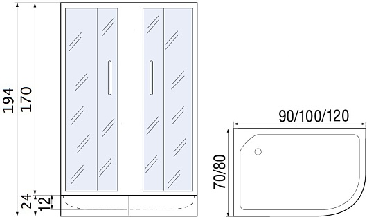 Душевой уголок левосторонний River Don 100/80/24 MT L - арт. 10000002171: