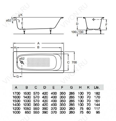 Чугунная ванна, арт. 212904001: