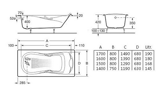 Roca Ванна чугунная Haiti 2327G000R 170х80 см